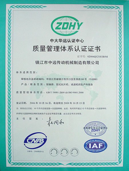 質(zhì)量管理體系認(rèn)證證書